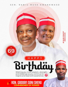 On behalf of the entire Ministry of Power and Renewable Energy, I, Engr. Dr. Gaddafi Sani Shehu, extend my heartfelt congratulations to our mentor and father, Senator Dr. Rabiu Musa Kwankwaso, on his 69th birthday.